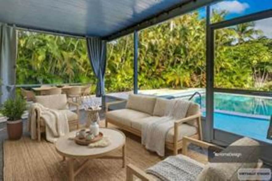 : Tropical Oasis w/ Heated-Pool in Wonderful Community. This Newly painted updated 3-bedroom 2-bathroom home is located on quiet Cul-de-sac. Come up the long driveway, enter the tiled living room, continue to updated Kraft Maid Modern kitchen, granite counters, stainless appliances, through hurricane impact French doors to your Pool & Covered Screened Porch. Primary bedroom & 3rd bedroom/Office have sliders to the backyard. Primary has ensuite Bathroom w/ Glass Frameless Shower. Second bathroom has a cabana door to the pool & a tub/shower combo. Second bedroom has lots of light. The laundry room has Front Loader Washer & Dryer and cabinets. Oversized Garage, Storage Shed, fenced yard, accordion shutters & Solar Heated Pool make your new home Complete!