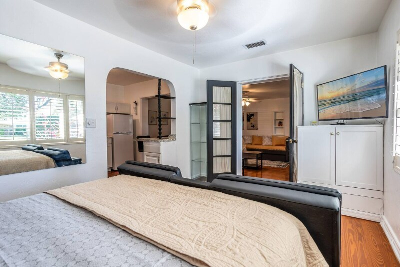 Property Id: 1632095 This private unit offers one bedroom with a queen bed, plus a futon that converts into a full-size bed for extra sleeping space. The unit also features a private bathroom, a living room with a trundle bed, a dining area, and a fully equipped kitchen for all your meal prep needs. Unit 1: Enjoy the privacy of your own entrance in this part of a well-maintained quadruplex. Work-Friendly: Includes two dedicated work areas and high-speed Wi-Fi for productivity or relaxation. Convenient Location: Only 20 minutes from the airport, making your travel easy. Pet-Friendly: Pets are welcome for a small fee. We kindly ask that they bring their own bed and stay off the furniture. A perfect blend of comfort, convenience, and space—book your stay today
