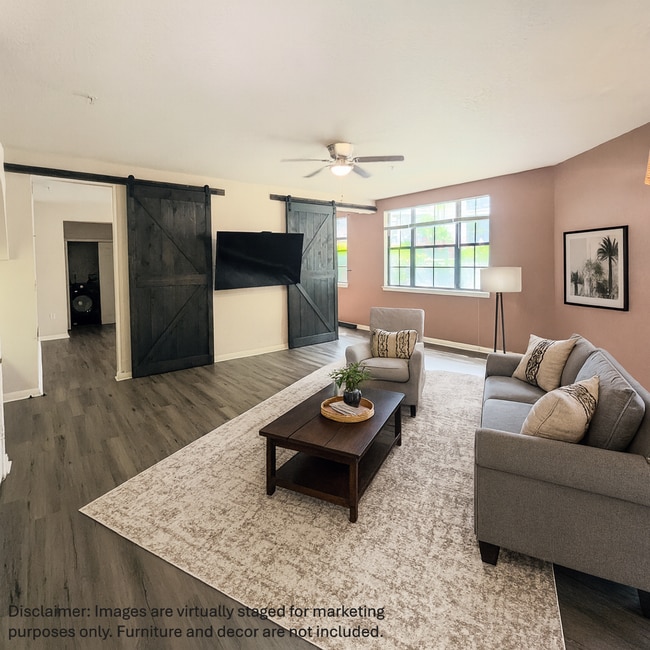 Stylish First-Floor Condo | L2 Layout | 902 Sq Ft Discover comfort and convenience in this beautifully updated first-floor unit featuring the sought-after L2 layout. With 902 square feet of thoughtfully designed space, this condo offers modern finishes and functional upgrades throughout. Interior Highlights: new wood look vinyl flooring and updated lighting Sleek stainless-steel appliances, including a flat cook-top stove and above-range microwave Sliding barn doors add a touch of character and style New AC and water heater for peace of mind Bathroom Features: Full-size bathtub with shower Extended vanity for ample counter space Linen closet for added storage Convenience & Storage: Full-size washer and dryer included Spacious walk-in closet Dedicated desk area with built-in drawers and cabinet space—perfect for remote work or study Appliances Included: dishwasher, fridge, stove, above range microwave, full size washer/dryer In unit access to fiber internet (paid account required for service) Property: *Swimming Pool *Fitness Center with circuit strength training, free weights, and cardio equipment *Community room with flat screen plasma television, billiards, kitchen and bar height dining table *Beautifully Landscaped Courtyards *Resident business center equipped with computers and WIFI *Conference Room *Lobby Area with Starbucks coffee *Central mail center *Fiber Internet Please contact Uptown Place Leasing Manager for availability