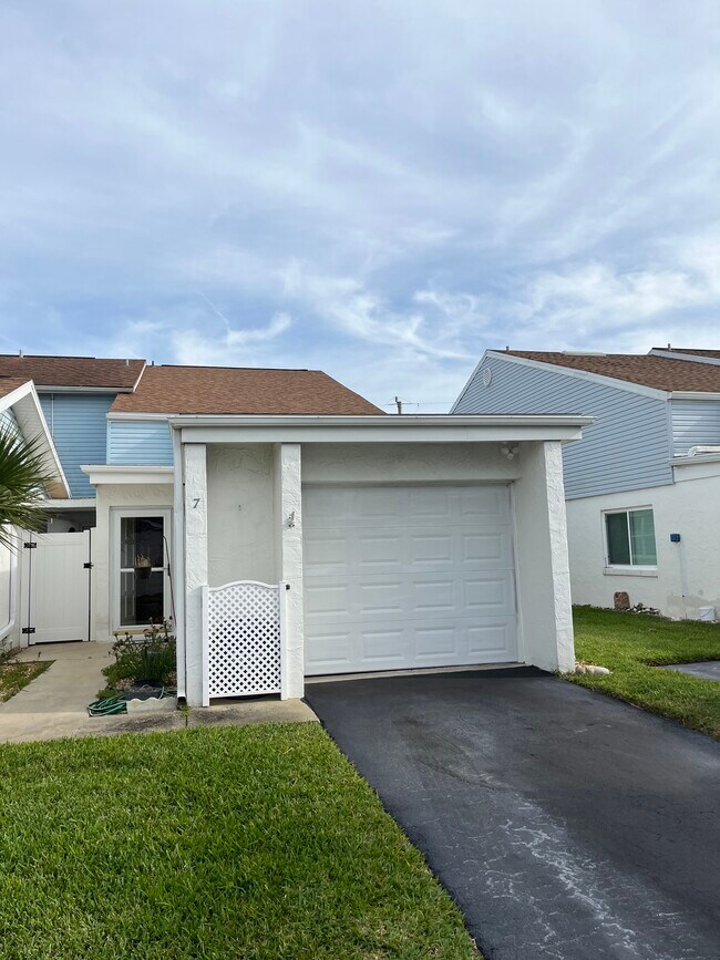 PERFECT LOCATION FOR BEACH LOVERS ! A charming 2-story townhome and FULLY FURNISHED, 2 blocks from the OCEAN! It has 2 spacious Bedrooms and 2 Full Baths, a large Loft with a full closet, and a Murphy bed that can be converted into a 3rd bedroom or left as an office or guest room. The high ceilings make the living room/dining area spacious as you enter, with natural light from the surrounding windows. The current layout features the ground floor main suite with French doors opening directly to your rear patio and backyard, perfect for watching sunsets or enjoying your morning coffee. Upstairs is the 2nd Bedroom & full bath, as well as the spacious Loft. This unit has plenty of storage throughout, with full-size closets in every room and a walk-in pantry off the kitchen/dining. The unit also has a garage and plenty of parking. The private community of The Gardens of New Britain provides many amenities, including a solar-heated community pool, a clubhouse with billiards, tennis courts, bocce ball court, and shuffleboard courts for all residents' enjoyment. In addition, tennis courts, lawn maintenance, all community amenities, and pest control. Experience this excellent opportunity to enjoy a low-maintenance Florida lifestyle.