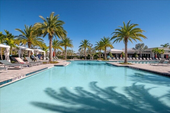 Courtesy Of Trillion Properties LLC. This rare Durham model offers six bedrooms and stunning lake views within the newest phase of the premier Alton community. The main residence features four spacious bedrooms upstairs, including a luxurious primary suite, plus a convenient downstairs guest suite with its own walk-in closet. Above the garage, a private one-bedroom apartment provides a full kitchen, additional laundry, and a separate side entrance. The home is thoughtfully upgraded with hard-surface flooring throughout, a gourmet kitchen featuring glass upper cabinets, and a summer kitchen for outdoor dining. You will also find a refreshing outdoor shower and numerous high-end finishes that enhance the modern aesthetic. This versatile property is perfect for those seeking extra space for guests or a sophisticated home office setup.
