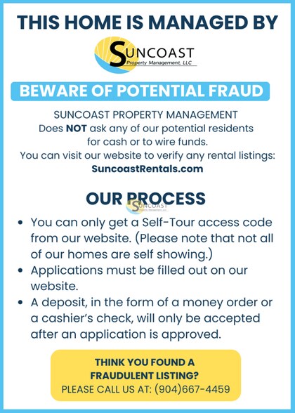 READY NOW! Welcome to this stunning, newly built 2-bedroom, 2-bathroom duplex in one of Palm Coast's most desirable neighborhoods. Perfectly designed for comfort, style, and functionality, this 977 sqft home features modern finishes throughout and offers everything you need for relaxed Florida living. Property Features: Spacious Living Areas: With 977 square feet of living space, this well-designed floor plan provides an open and airy feel throughout. The smart layout maximizes every inch of space, offering cozy yet ample rooms that suit your lifestyle. Bedrooms & Bathrooms: The home features two generously sized bedrooms with plenty of closet space. The two full bathrooms are beautifully designed, offering both style and convenience. Modern Kitchen with Stainless Steel Appliances: The heart of the home is the sleek, fully equipped kitchen. Enjoy cooking and entertaining with high-end stainless steel appliances, including a stove, refrigerator, and dishwasher. Gorgeous Granite Countertops: The kitchen features beautiful granite countertops, offering both elegance and practicality. The neutral tones complement the stainless steel appliances and make the space feel inviting and luxurious. Durable & Stylish Vinyl Plank Flooring: Throughout the entire home, you'll find high-quality vinyl plank flooring. Not only is it low-maintenance and easy to clean, but it also brings a modern, sophisticated look to every room, from the bedrooms to the living areas and kitchen. Prime Location: Located in the heart of Palm Coast, this home offers easy access to shopping, dining, schools, parks, and beaches. Whether you're looking to relax on the coast or enjoy nearby hot-spots, this duplex is perfectly situated to meet your needs. We are Pet friendly with breed approval and a non-refundable deposit. No pet rent! Suncoast's Choose How to Pay Program = More Flexibility. High upfront costs shouldnt hold you back from finding the right home. Thats why we offer two simple options: 1. Pay the traditional full security deposit at move-in, or 2. Choose our Flexible Security Deposit Plan, which lets you spread out your payments while still keeping the same coverage. This program helps ease move-in costs without sacrificing peace of mind. Photos are for illustration purposes only and some details may differ! All SunCoast Property Management residents are enrolled in the Resident Benefits Package (RBP) for $75.00/month which includes liability insurance, credit building to help boost the residents credit score with timely rent payments, up to $1M Identity Theft Protection, HVAC air filter delivery (for applicable properties), move-in concierge service making utility connection and home service setup a breeze during your move-in, on-demand pest control, and much more! The RBP is an additional cost and is not included in the advertised monthly rental rate. More details upon application. BEWARE of potential fraud. If you suspect one of our properties being listed fraudulently, please email: Suncoast Property Management does NOT ask any of our potential residents to wire funds. Our main office is located in Jacksonville; Florida and you can visit our website to verify any rental listing. Lease Administrative Fee. Upon execution of this Lease, Tenant will pay Landlord a nonrefundable Lease Administrative Fee of $200.00. Pay Online Pets Allowed Washer/Dryer Connections