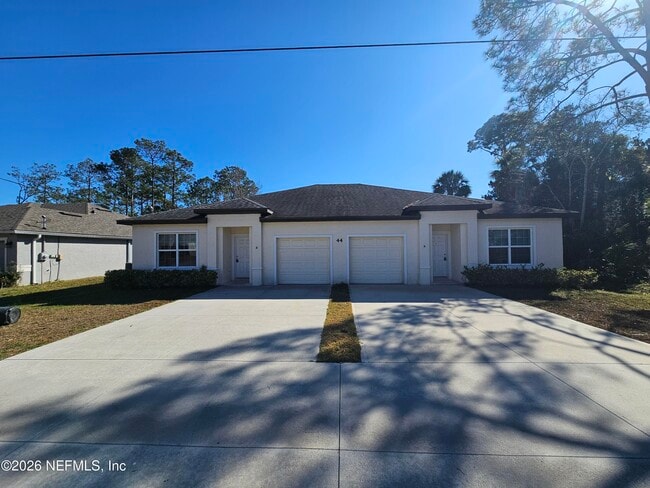 Freshly painted 3 bedroom 2 bathroom unit with open floorplan. One car garage and driveway. Vaulted ceilings. Located in a highly desired area of Palm Coast with quick easy access to I-95 & shopping which is just down the street. Beaches are only 15 minutes away. Great neighborhood with nice homes in the surrounding area. Side-by-side duplex featuring two separate units (A & B),each priced at $1,550/month. Ideal for related familiesspecial pricing available when both units are leased together. MLS# 2123434
