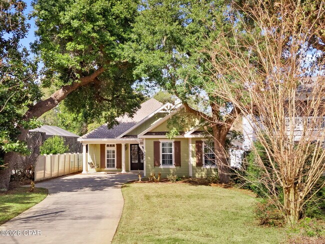 Wonderful opportunity to live just minutes from the World's Most Beautiful Beaches and steps from St. Andrews Bay. 5 miles from St. Andrew State Park and numerous other Public Beach Accesses, this Spacious, Custom Coastal Cottage Style Home tucked away on a lot overflowing with Spanish Moss draped Live Oaks, Crepe Myrtle's, and Wild Magnolia Trees. This bright and airy, open floor plan 4 bedroom, 3 bath home is just under 2600 ft. and is beautifully designed with 10-foot ceilings, tall crown molding & baseboards as well as other beautiful wood trim throughout. Situated on the lot to offer the perfect amount of privacy in an amazing area surrounded by Saint Andrews Bay and Grand Lagoon. Grand Lagoon can be seen through the breakfast area windows and from the screened porch. Just a quick walk from the driveway will lead you to one of the best accesses to Saint Andrews Bay where you can launch your canoe, kayak, or paddle board. You can also see Shell Island & Saint Andrew State Park from this point. A very short distance to many beach accesses to the Gulf-home to the World's Most Beautiful Beaches. The split bedroom floor plan features a large master suite with walk-in closet as large as many bedrooms. In addition to large double vanity, linen closet, and linen cabinet, the master bath offers a large walk-in shower with bench, two stationary shower heads and one mobile shower wand. All bedrooms are oversized. Everything in this is home was built with comfort in mind. Gourmet dream kitchen with huge island overlooks spacious family room with wood fireplace flanked on either side by large built-in bookcases. Kitchen includes built-in gas cooktop, double wall ovens in addition to a microwave, two dishwashers and an enormous walk-in pantry. Very large laundry room with built-in laundry sink, lots of shelving, cabinetry and hanging space. Enjoy a relaxing evening on the front porch swing or enjoy the view of Grand Lagoon from the screened porch, strategically placed so that it does not block sunlight coming into the living area. Home features an unbelievable amount of storage space and two gas tankless water heaters so you'll never have to wait for or run out or hot water. Expanded two car courtyard entry garage with extra space for storage. Fenced back yard. Lawn weed control and pest control provided. Refrigerator in garage is AS IS. 1 -2 dogs negotiable with owner's approval. $500 pet deposit/one time $50 pet fee/$25 pet rent. Measurements are approximate. Square footage per floor plans.