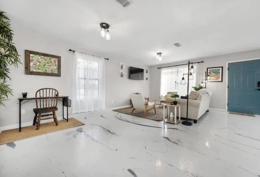 The advertised rate of $2,849/month is the lowest available price, based on a 1 month(s) stay with a move-in date of September 29, 2026. Rates vary depending on the duration of stay, season, and other parameters. For exact pricing and additional pricing components, please visit our website and enter your desired move-in and move-out dates. The rate is applicable when billed upfront; it can be higher if billed in multiple payments. Feel at home in this 2-bedroom, 1-bathroom home offering 1,050 sqft of living space. This single-story home features a small driveway for 1-2 cars. The open-concept living, dining, and kitchen area creates a connected and varied space. The cozy living room includes a smart TV and board games. The dining room features a large table. The kitchen is fully equipped with cutlery, dishware, pots, pans, and basic cooking essentials, and includes an expansive breakfast bar/island. The bathroom has a rainfall shower head over a shower and tub bath, and basic hygiene offerings like shampoo and q-tips are provided. Pets are welcome with a fee of $75 per stay, with a maximum of 2 pets. Additional fees are incurred for damages, not picking up after pets in the yard, or pets on furniture or beds. Pets are not allowed to be left alone unless crated, and pet noise must not cause a noise disturbance for neighbors. Tucked away from the street in a peaceful area with large oak trees, this home is located in the Myrtle Grove neighborhood of Pensacola, Florida. It's centrally located for beaches, shopping, and restaurants, and a short drive to the main Pensacola Beach. Navy Point Beach is 11 minutes away, the main Pensacola Beach is 24 minutes away, Naval Air Station is 19 minutes away, the National Naval Aviation Museum is 19 minutes away, Pensacola Shopping Plaza is 5 minutes away, Corry Field Shopping Mall is 7 minutes away, Fort Pickens is 45 minutes away and Gulf Breeze Zoo is 37 minutes away. Uber and Lyft operate in the area, and downtown is very walkable. There is a small private school next door, and you may hear children playing during school hours. Quiet hours must be maintained between 10 pm and 8 am. Additional cleaning fees will apply for drug paraphernalia ($300), bodily fluid or waste ($300), glitter or confetti ($250), smoking ($250), unauthorized pets ($250), and unwashed dishes ($50). Dogs are not allowed on the furniture. If additional guests are brought beyond the original reservation guest total and the host is not notified, the booking will be canceled immediately with no refund and guests will be required to leave the property. Any additional guests over the amount specified in the reservation (or pre-approved by the hosts) will result in a $75 fee per person. Failing to vacate the property by the posted/agreed upon checkout time will result in a $60 per hour (pro-rated) late checkout fee. Any unregistered pet will incur a minimum $250 emergency cleaning and sanitation fee, covering deep cleaning, allergy treatment, odor removal, and extra turnover time. [SI]