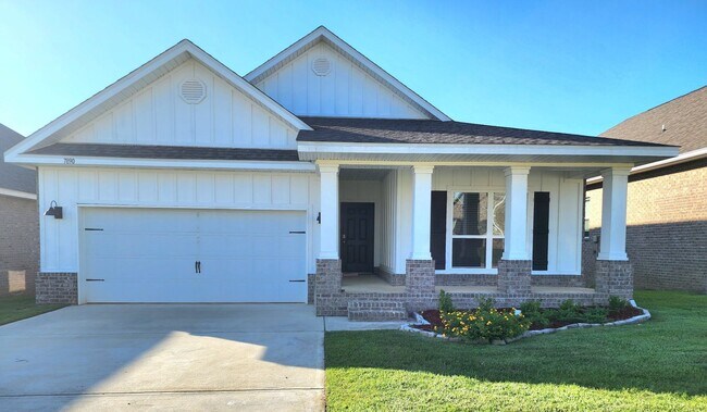 Welcome to the lovely four-bedroom home in the vibrant, gated community of Antietam! This jaw-dropping residence offers luxury and tranquility with stunning pond views and lawncare included. The lavish entryway, high ceilings, and covered porch create a bright, airy atmosphere. Inside, an open floor plan with vinyl plank flooring leads to a chef's dream kitchen featuring a granite island, stainless steel appliances, and a spacious pantry. The master suite boasts two walk-in closets and a luxurious bathroom with a custom-tiled shower and double vanity. Three additional guest bedrooms and a guest bath provide ample space. The covered patio overlooks an expansive yard against quiet woods walking trails and a beautiful pond view, equipped with a sprinkler system. This sought-after location is close to top-rated schools, a five-minute drive to I-10, Navy Federal, and shopping centers, with a 20-minute commute to Corry Station and NAS. Experience the vibrant community spirit and luxury living at Antietam! Pets allowed with owner's approval and pet screening. Visit to apply online. $75 App fee per adult, half off for active-duty military. Subject to credit check, background check, employment verification, and rental verification. CERTIFIED Funds required for move in!