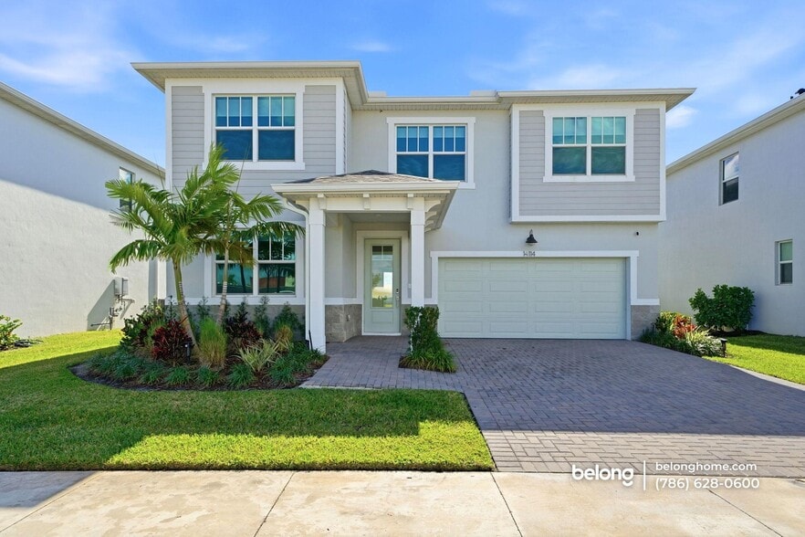 Clean lines and modern finishes define this 4-bedroom, 2.5-bath home, where thoughtful design supports a streamlined, contemporary aesthetic. Natural light moves easily through large windows, highlighting light-toned flooring and a neutral palette that keeps each space feeling composed and uncluttered. The kitchen anchors the main living area with dark cabinetry, stainless appliances, and smooth, understated surfaces. A generous island with an integrated sink provides space for casual seating, prep, or gathering while keeping visual noise to a minimum. Storage is well considered, including a dedicated pantry that helps maintain clean countertops and a refined look. Living in Cadence at Port Saint Lucie offers an exceptional quality of life, thanks to its design as a master-planned community that fosters both comfort and connection. Residents frequently highlight the friendly atmosphere and strong community spirit, which is actively supported by features like a resident-run social committee that organizes events such as holiday parties and food truck nights. The resort-style amenities, including a community pool, cabana, and grilling stations, serve as central hubs for social interaction and recreation, creating a relaxed, "vacation-like" lifestyle. Beyond the immediate neighborhood, residents benefit from the proximity to Tradition Square's dining and shopping options, access to the extensive T-Trail for walking and biking, and the convenience of nearby world-class healthcare facilities like Cleveland Clinic Tradition Hospital. This blend of modern home designs, valuable amenities, and a true small-town, neighborly feel makes Cadence an ideal choice for quality living on Florida's Treasure Coast. *Our homes come as-is with all essentials in working order. Want upgrades? Request it through the Belong app, and our trusted pros will take care of the rest.