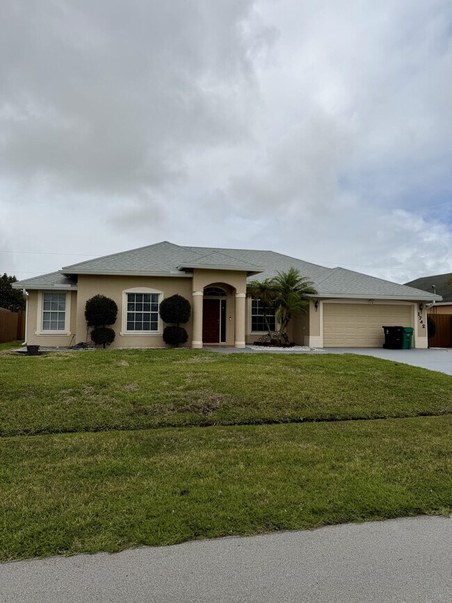 Welcome home to this 4-bedroom,2-bath CBS single-family residence in Port St. Lucie,centrally located between Gatlin Blvd and Becker Rd! Featuring 10-foot ceilings and a split floor plan,this home offers both space and privacy. The kitchen includes granite countertops and stainless steel appliances,while the primary suite features French doors with built-in blinds and a bathroom with a separate tub and shower. Enjoy a large back patio,fully fenced yard,dedicated laundry room,pantry,2-car garage,and no HOA. Note: Shed does not convey. MLS ID B26014728