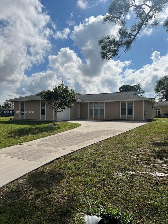Welcome to this beautifully maintained 3-bedroom, 2-bath corner-lot home in the heart of Port St. Lucie. Situated on an expansive oversized yard, this property offers the perfect blend of comfort, space, and privacy. Featuring a garage, spacious living and dining areas, and a screened lanai ideal for relaxing or entertaining, this home truly checks all the boxes. The corner lot provides extra outdoor space and great curb appeal. Conveniently located just minutes from shopping centers, restaurants, schools, banks, and everyday essentials, with easy access to major roadways for commuting. Close to parks, recreation, and all that Port St. Lucie has to offer, including nearby St. Lucie West and the growing local retail corridor. A rare rental opportunity offering space, convenience, and a great residential setting. MLS # A11998487