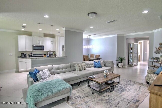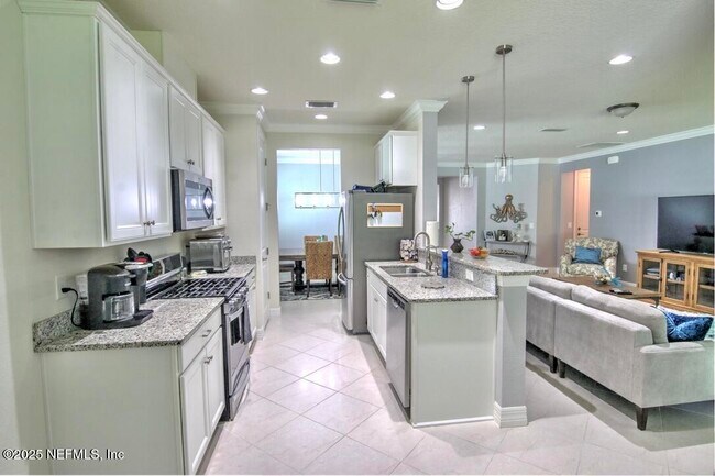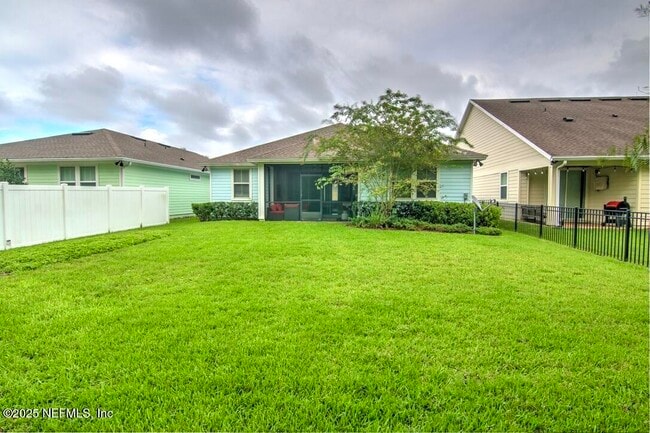 This impressive three-bedroom,two-bathroom residence is situated on a partially fenced lot overlooking a serene preserve in the highly desirable Palencia community. The home showcases beautifully custom-tiled main areas and bathrooms. The kitchen is elegantly appointed with white wooden cabinetry,stainless steel appliances,and granite countertops throughout. The expansive primary bedroom features a relaxing garden tub,a separate shower,and a generous walk-in closet. The family room seamlessly connects to the covered,screened lanai,enhancing the living space. Additionally,the property includes two spare bedrooms,Water softner,gas tankless water heater,a two-car garage,and a laundry room equipped with a washer & dryer. Beyond the confines of this magnificent residence,the community offers an array of exceptional amenities.