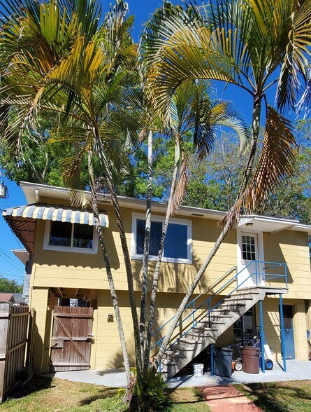 Recently renovated, bright and airy 2-bedroom, 1-bath over-garage apartment, with an enclosed porch/office/3rd BR on the second floor in the Historic Old NE neighborhood. Unfurnished unit contains an open kitchen to the living room, two bedrooms with closets, a designer bathroom between the bedrooms, a large office/porch with extra closet, new efficient mini-split heat/AC for each room, ceiling fans in each room, dishwasher, new microwave, new LVP floors, and one off-street, parking space. With a fully fenced yard, the apartment is located in the heart of Old Northeast, within a short walk to the parks and beach on Tampa Bay, as well as downtown St. Pete and the Pier. This charming apartment has new flooring, new AC/heat units, and the entire bathroom and kitchen have been revamped. The kitchen has new white shaker cabinets with granite countertops. The bath with walk-in shower has a designer sink and sliding barn doors to each bedroom. Washer & dryer access at no charge in the garage below. Only 5 blocks to Northshore Park, a few more to Vinoy Park, and 6 blocks to downtown St. Petersburg and the new Pier.