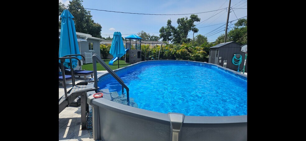 Stunning single family block home completely upgraded with waterproof laminate floors, smart thermostat and stainless appliances. Enjoy beach coastal vibes but high and dry in a non flood zone. Quiet Dead end Street in Peacock Paradise. Salt water pool, AstroTurf backyard with full swing set included. Large two bedrooms with a bonus den Florida room and one car garage with epoxy floors. Unfurnished. One year lease. Water sewer trash and internet are included in rent.