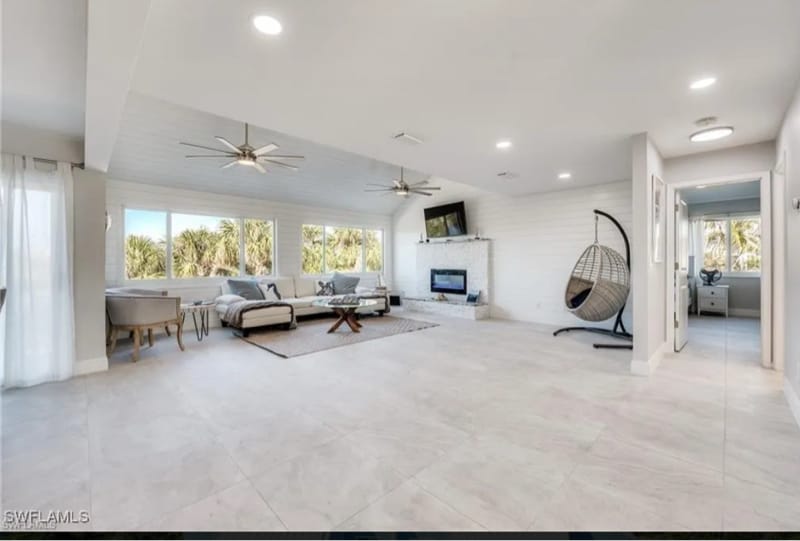 Welcome to this stunning 3 bed, 2 bath single-family home in Sanibel, FL! This beautifully furnished property features a fireplace, vaulted ceilings, and a garage. Enjoy the convenience of on-site laundry, security cameras, and proximity to parks. Utilities included and pets allowed.