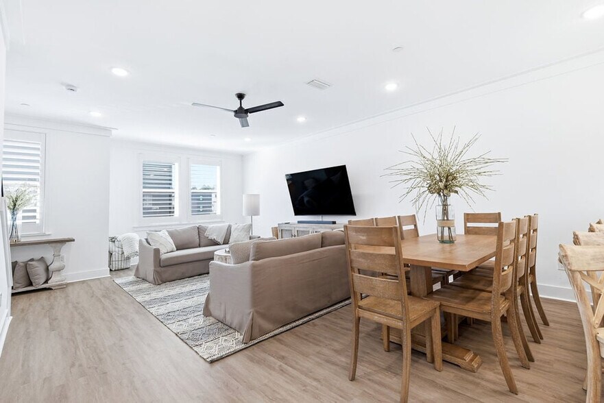 The advertised rate of $2,653/month is the lowest available price, based on a 1 month(s) stay with a move-in date of November 4, 2026. Rates vary depending on the duration of stay, season, and other parameters. For exact pricing and additional pricing components, please visit our website and enter your desired move-in and move-out dates. The rate is applicable when billed upfront; it can be higher if billed in multiple payments. Feel at home in this luxury modern townhome, Booked by the Beach, perfectly situated near the tranquil bay in beautiful Santa Rosa Beach. This upscale three-story retreat offers the ideal balance of serene bay living and quick access to the best of 30A. Designed with luxury, comfort, and functionality in mind, this home makes the perfect coastal getaway. The ground level features a king bedroom with en-suite bathroom, smart TV, and direct access to the screened-in patio. The second floor offers a stylish living room with comfortable seating and a large smart TV, a well-equipped modern kitchen featuring a spacious island with seating for six, a dining area with a large table for six, a convenient guest half bath, a laundry room with full-size washer and dryer, and a private balcony. The third floor includes a queen bedroom with ceiling fan and smart TV, a bedroom with a built-in twin-over-queen bunk, and a primary suite with a king bed, en-suite bath, ceiling fan, and smart TV. One-car garage is available for easy parking and storage. Walton County offers a seasonal tram service for convenient beach access. Located on the peaceful north side of Highway 98, this home offers easy access to North Beach Social, the bayfront, and a short 10-minute drive to Ed Walline Beach Access, along with nearby options such as Dune Allen and Topsail Hill Preserve State Park. It's also close to 30A dining, shopping, trails, and attractions. Pets are not allowed. [SI]