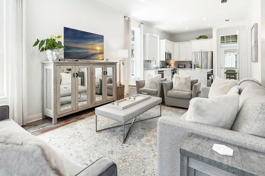 The advertised rate of $8,422/month is the lowest available price, based on a 30 day(s) stay with a move-in date of August 2, 2026. Rates vary depending on the duration of stay, season, and other parameters. For exact pricing and additional pricing components, please visit our website and enter your desired move-in and move-out dates. The rate is applicable when billed upfront; it can be higher if billed in multiple payments. Feel at home at Sandcastle 79, a beautifully designed 4-bedroom, 3-bath retreat located in the heart of Blue Mountain Beach along scenic 30A. Nestled in a quiet, family-friendly neighborhood, this home offers easy walkable beach access without crossing 30A, making it ideal for families and groups seeking both relaxation and convenience. This home features an open-concept floor plan filled with natural light and chic coastal décor. The spacious living area flows seamlessly into the dining space and fully equipped kitchen. Smart TVs are located in every bedroom, and high-speed Wi-Fi ensures you stay connected. The fully equipped kitchen makes meal prep effortless and includes Keurig and drip coffee makers, a blender, toaster, microwave, cookware, dishes, utensils, and ample counter space and storage. Beach essentials are provided, including beach chairs, umbrellas, a beach cart, and boogie boards. Guests enjoy access to the community pool, hot tub, and fitness center, located just minutes from the home. You'll be close to local favorites including Blue Mountain Creamery, Blue Mountain Bakery, scenic bike paths, nature trails, and some of the most beloved beaches along 30A. Walkable beach path is a 5-minute stroll with no crossing 30A. Golf cart friendly access to Blue Mountain Beach Access is approximately 0.5 miles away. No pets are allowed. Missing community wristbands will result in a $100 replacement fee. This home is not wheelchair accessible and requires stair use. The primary renter must be 25 years or older. [SI]