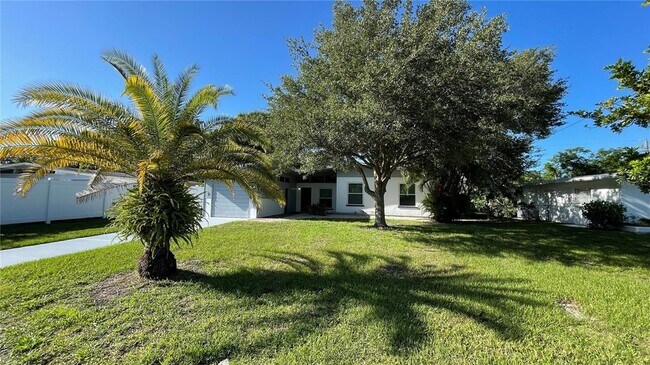 Turnkey Furnished Short-Term Rental Available 1/1/26 - 1/31/26 Only. Recently renovated Mid-Century Modern 3 bedrooms, 2 baths, 1 car garage home just minutes from Downtown Sarasota. Open concept living and dining rooms with cathedral ceilings and wood beams. The Interior and Exterior of the home have been freshly painted. The home has restored Terrazzo flooring throughout. The fully equipped kitchen has new appliances, a pantry, plenty of cabinets for storage, an eat-in countertop that looks out to the living room. The master bedroom has an updated en-suite bathroom with a walk-in shower, the other 2 bedrooms share an updated bathroom with a shower and bathtub. The backyard is fenced and features an amazing paver entertainment area. Walking distance to the YMCA and famous Yoder's Amish Village. Minutes away from world-famous Siesta Key Beach, Lido Beach, St Armand's Circle, museums, and so much more.