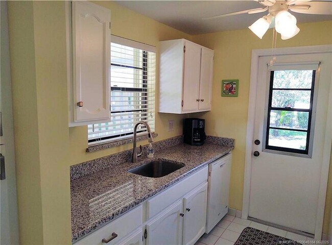 Awesom? golf v??ws ?f the 3rd fairw?? ?n this CBS,tastefull? furni?hed,2bed plus den/2bath/1car carport.Relax and enjoy this lovely,bright & sunny unit,open concept,w/an updated new kitchen,& a screen porch.All age friendly.Enjoy the breezes & lifestyle.Easy access to dining,shopping,downtown Stuart,parks,& medical facilities.This spacious home offers full size washer/dryer,dishwasher,microwave,disposal,multiple TV's,queen bed in master & spare bdrm,& your den can be used as a 3rd bdrm. In excellent condition.Basic cable/wifi,lawn care,water,sewer,trash,included in rent. Electric is included but capped at $100 a mo.,any overage deducted from security. Exit cleaning fee of $300.Tenant responsible for 12% sales/tourist tax on rental. Available 07/01/25 to 03/17/26. Community pool.Memberships available for social,golf,& tennis at Miles Grant Country Club.The Intracoastal Waterway is 1/4 mile away & directly across from Peck's Lake Preserve & boardwalk to beach access. MLS# M20045164