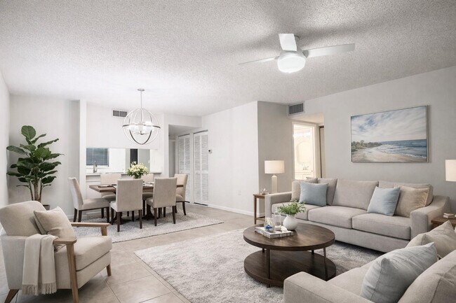 Welcome to this spacious unit in a quiet community. This first floor unit features 2 spacious bedrooms & 2 full baths with beautiful laminate flooring. It boasts an updated kitchen with quartz countertops. You'll find the updated,bathrooms include marble vanities,water resistant laminate flooring,& a soaking tub in the guest bathroom. There are large walk-in closets and plenty of storage space both inside & out in the patio areas. There is a newer ac,newer water heater,& a washer & dryer in the unit. Windows have accordion shutters & roll down shutters for both screened patios. Relax in either of the TWO private patios off the front & rear of the unit or take a dip in the community pool. Prime location-close to Amerant Bank Arena,Sawgrass Mall,& major highways. Don't miss this gem! Some images have been virtually staged to illustrate the propertys potential. MLS ID F10548638