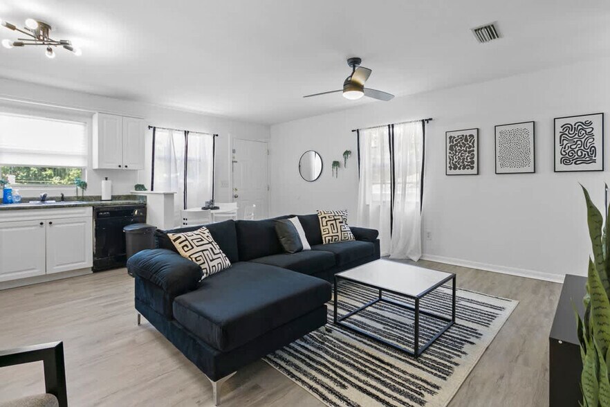 Welcome to Zebra House, a stylish and contemporary 2-bedroom, 1-bathroom apartment located in the heart of vibrant Tampa Bay, Florida. Designed with a sleek black and white theme, this modern retreat offers a unique and sophisticated atmosphere for your stay. Located just 15 minutes away from downtown Tampa, Ybor City, and Seminole Heights, you'll be perfectly positioned to explore the vibrant cultural attractions and thriving food scene or head out for a day of adventure at Busch Gardens. Upon entering, you'll be greeted by an open-concept living area adorned with clean lines, minimalist décor, and an abundance of natural light. The living room features comfortable seating where you can relax and unwind after a day of exploring the city. A large flat-screen TV awaits you for catching up on your favorite shows or enjoying a movie night. The fully equipped kitchen provides everything you need to channel your inner chef and prepare delicious meals. Start your morning with a cup of coffee using the complimentary Keurig machine and enjoy your meals at the comfortable dining table surrounded by hanging plants and artistic wall hangings. The two well-appointed bedrooms offer a cozy and tranquil haven, each featuring comfortable queen-sized beds adorned with soft linens and modern-inspired accents. The apartment includes a full-sized washer and dryer, a Pack N’ Play for children, a 65” Smart TV for an immersive viewing experience, high-speed Wi-Fi for all your streaming needs, and a dedicated parking spot. Military discounts are available upon inquiry. Palmetto Beach is a hidden gem, a small community just minutes from the hustle and bustle of downtown Tampa, Channelside, and Ybor. You are only a block or two from the water, and there is very little through traffic in this growing neighborhood. A short Uber ride of about five to ten minutes will get you to Busch Gardens, Downtown Tampa, Channelside, Armature Works, Hyde Park, South Tampa, The Port, Tampa International Airport, Lowry Park Zoo, The Aquarium, Raymond James Stadium, Amalie Arena, The Straz Center, and much more. This apartment is very centrally located. Florida's tropical environment means you may encounter local wildlife, including insects. The home is well maintained and treated regularly to reduce bug encounters, but occasional sightings may occur. No refunds will be issued for this. The apartment features a smart lock code for easy access, and guests are asked to respect quiet hours from 11pm to 8am. Smoking inside the home is prohibited, and any evidence of smoking will result in a fee for odor removal, duct cleaning, and furniture cleaning. Parties and events are not allowed unless previously approved. Guests are asked to be considerate of neighbors and maintain quiet hours from 10:00 PM to 8:00 AM when outside. [SI]