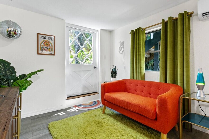 Welcome to Groovy Getaway, your retro retreat in the trendy Seminole Heights neighborhood, close to everything Tampa has to offer. This chic home features 1 bedroom, a fully stocked kitchen, Keurig machine, full bathroom, Smart TV, and a full-sized washer and dryer on the property. Feel the good vibes all around you as you chill in this funky-fresh home. You've found your perfect, peaceful home away from home in the coolest part of Tampa Bay, the historic and trendy neighborhood of Seminole Heights. Our 70's themed home is perfect for a solo or couples trip, looking to get away from the regular day-to-day hustle. Rest, recharge your batteries, and enjoy the Florida sunshine during your stay. Spend time in the comfy, but funky living room and dining room area of the home, while catching up on your favorite Netflix shows or playing board games found in the TV console. Cook up a delightful meal in the fully stocked, retro kitchen. When you're ready to take a break from your busy life, curl up under the covers of the spacious queen-sized bed equipped with a comfortable memory foam mattress. The bathrooms provide shampoo and conditioner, body wash, hair dryer, and extra towels, everything you need for a perfect stay. The Groovy Getaway offers a dedicated parking spot behind the bungalow. You can also park behind the Groovy Getaway where you'll find a left spot alongside the wall dedicated to guests. To access this, guests should enter through the alleyway behind the home and turn right into one of the two spaces. Walking just a few blocks will take you to coffee shops, restaurants, bars, and many other local favorites. A short Uber ride of about five to ten minutes will get you to Busch Gardens, Downtown Tampa, Channelside, Armature Works, Hyde Park, South Tampa, The Port, Tampa International Airport, Lowry Park Zoo, The Aquarium, Raymond James Stadium, Amalie Arena, The Straz Center, and much more. This house is very centrally located. Florida is tropical, and in such an environment, local wildlife, including insects, is frequently encountered. The home is well maintained and treated regularly to reduce bug encounters, but the occasional bug may appear. No refunds will be issued for the occasional dead or live bug. This is a 1920s bungalow and comes with quirks and charm. The washer and dryer are located outside on the back porch of the main house, a shared space with clear signage. Free laundry detergent is provided for your convenience. Use the washer/dryer between 8:00 AM and 9:00 PM to respect other guests. Enter with your personal smart lock code sent after booking. Quiet hours are from 11 PM to 8 AM. No pets on furniture to prevent smells, stains, and hair. No smoking inside; evidence will result in a fee for odor removal, duct cleaning, and furniture cleaning. No parties or events to preserve the home's condition for future guests. [SI]