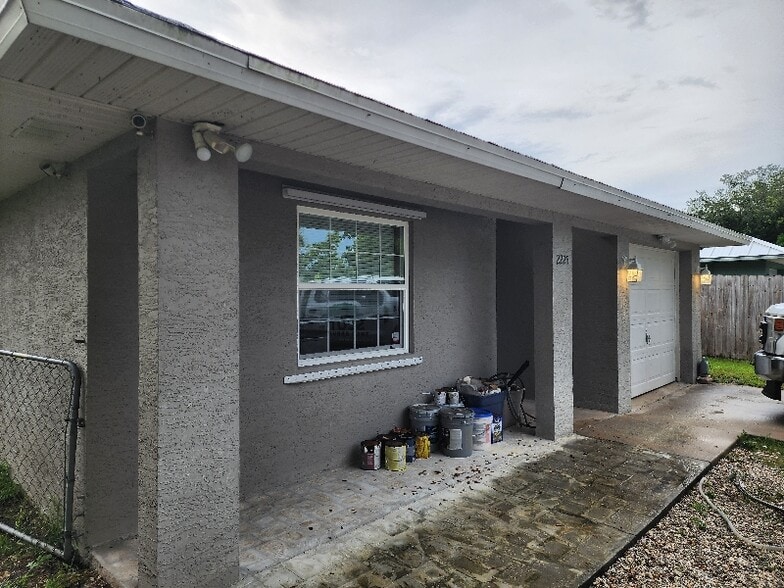 Newly remodeled 3/2/1 concrete block with fenced in back yard. Single car garage has electric opener. Minutes from I95 and the outlet malls. New A/C System and water heater as well as newer appliances including clothes washer and dryer located on garage. House has whole home surge protector installed (Not FPL) as well as corrugated storm shutters. All windows have interior shades. House has a Septic tank in rear corner of lot that was pumped November 2025. House is on county water and FPL electric. Allow up to 2 dogs no bread prejudice or restrictions (Non-Refundable Pet Fee Does Apply). Yard maintenance and garbage/recycling included.