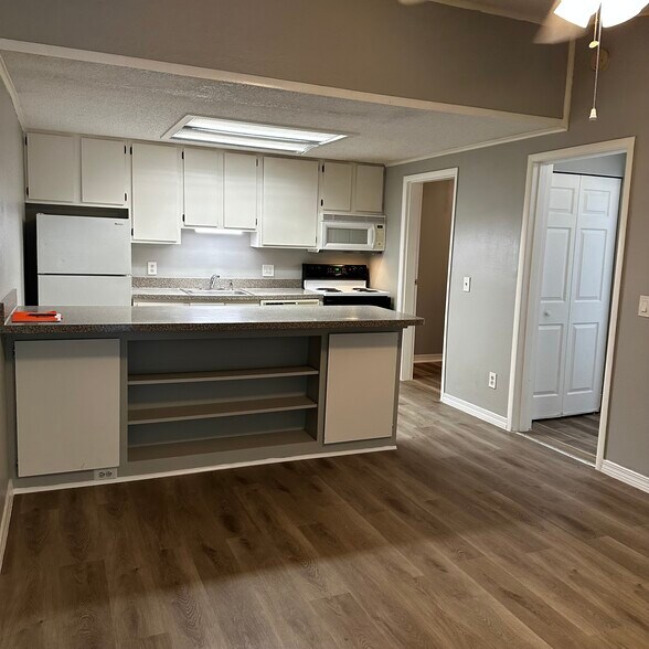 Charming & Updated 1 Bed / 1 Bath Condo with Open Layout + Private Screened Porch Welcome home to this bright and inviting 1-bedroom, 1-bath condo featuring an open-concept living and kitchen area with beautiful wood-style flooring and a breakfast bar perfect for entertaining. The kitchen offers white cabinetry, ample counter space, and full appliances. Enjoy the convenience of an in-unit washer and dryer, spacious bedroom, and full bathrooms for comfortable living. Relax on your private screened-in porch with ceiling fan — ideal for morning coffee or evening unwinding. This well-maintained unit offers both comfort and functionality in a peaceful setting.