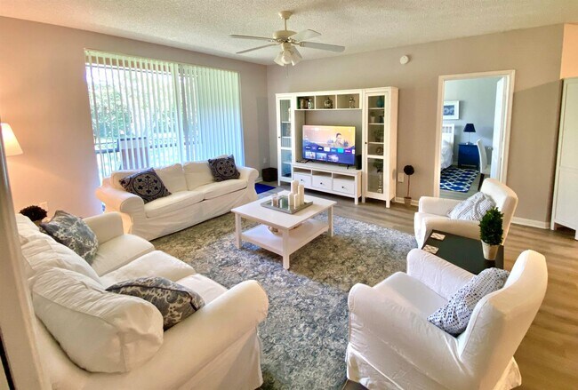 Gorgeous fully furnished, 2 bedroom and 2-bathroom apartment in amazing location. Fully renovated and tastefully decorated. Or for longer term. Smart TV in every room. One Covered Garage. 2 King beds, 3 regular beds, 1 baby bed. Fully furnished with the finest of everything including all the kitchen utensils. Just bring personal items. Highly desirable location combined with top notch amenities makes St. Andrews a sought-after community. Located just minutes from the WEF Showgrounds and other Equestrian facilities. Close to restaurants, PBI airport, downtown West Palm Beach and much more! The community offers a gym, tennis court, and an amazing pool area. Available for minimum of 6 months rental option with $3500/month.