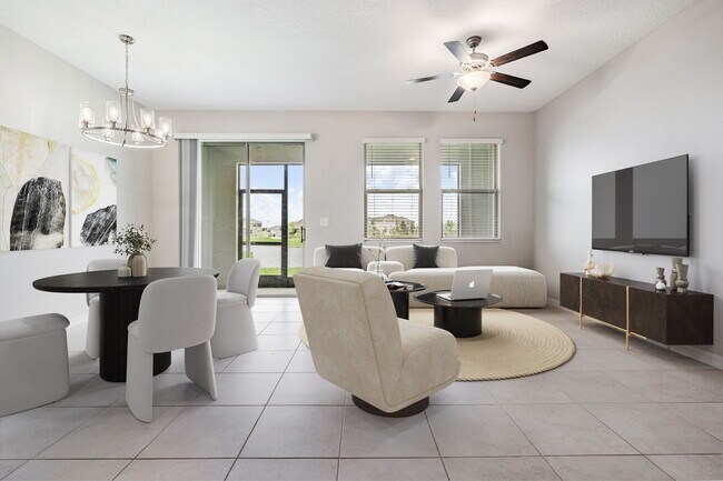One or more photo(s) has been virtually staged. | Looking to live the resort life? Want everyday to be a vacation? Shopping for that quiet, family-friendly community? Welcome to The Townhome at 32069 Blue Passing Loop in the Epperson Crystal Lagoon Community. The Townhome is a very large 3 bed, 2.5 bath rental with an attached 1-car garage (with mobile connectivity) and a sun-soaked lanai overlooking the gorgeous manicured lawn and duck pond. Built in 2020, this luxury townhome is modern through-and-through, finished with tile flooring throughout the downstairs and carpeting upstairs, ceiling fans in every room, several walk-in closets, extra space for a desk or second living area, a walk in shower in the master plus his and hers sinks, and complimentary w/d in the house. The kitchen is complete with stainless steel appliances, beautiful countertops, and an island for the home chef or fanciful host! The Epperson Crystal Lagoon Community is the exemplary Florida lifestyle, with the first crystal-clear, man-made Lagoon in the United States! The community spans more than 12.5 acres of tropical paradise, with more than 7.5 acres of crystal clear blue water (yes, literally 7.5 acres of water). There's even a swim-up bar, palm trees, and sandy beaches to soak in the sun! What else does the lagoon community offer? -- - The Hub Pavilion - Sandbar - Cabana Cove - Slidezilla - The Dock - Water Obstacle Course - The Reef Cafe - Gasparilla Island - Tiki Huts - Dog Parks - Hiking Trails - Charter School - Butterfly Park This rental is pet friendly, with an upfront non-refundable fee and monthly pet rent. Restrictions do apply. Security deposit varies depending on credit score. Renters insurance required. Leases of 12-18 months accepted. Tenant pays all utilities except internet & Wifi (provided by the community).