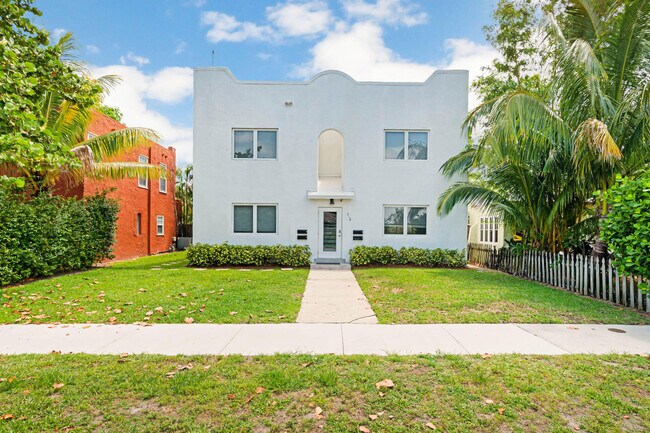 This newly renovated Spanish Mediterranean spacious 1 bedroom 1 bath plus den is located in historic Flamingo Park Neighborhood within walking distance to dining, shopping and all the best West Palm has to offer! Unit will be delivered with new kitchen and flooring and features high ceilings, granite kitchen counter tops, dining alcove, central a/c, separate in-unit laundry room and shared outdoor deck. Large open backyard for mid-sized to small dogs. Street parking for up to 2 cars in front of building. Landlord pays trash, water, sewer and grounds maintenance. Tenant pays own electric bill and cable, if used. First, last and security is required to lease.