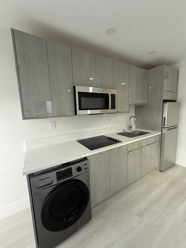 Newly renovated upstairs one-bedroom,one-bath apartment accessed via stairs and available for immediate occupancy in the SoSo area. This light and bright unit has been fully updated from top to bottom,including new flooring,updated kitchen and bath,new appliances,and modern finishes throughout. The kitchen is equipped with a cooktop,microwave,refrigerator,and washer/dryer combo. Located on S. Dixie Highway above commercial space,offering convenient access to nearby restaurants,shops,tennis,golf,the Intracoastal Waterway,beaches,and downtown West Palm Beach. Two residential units are located side-by-side; this listing represents one individual unit. Shared rooftop terrace. Street parking. No pets. First month,last month,security deposit,and background check required. MLS ID R11148211
