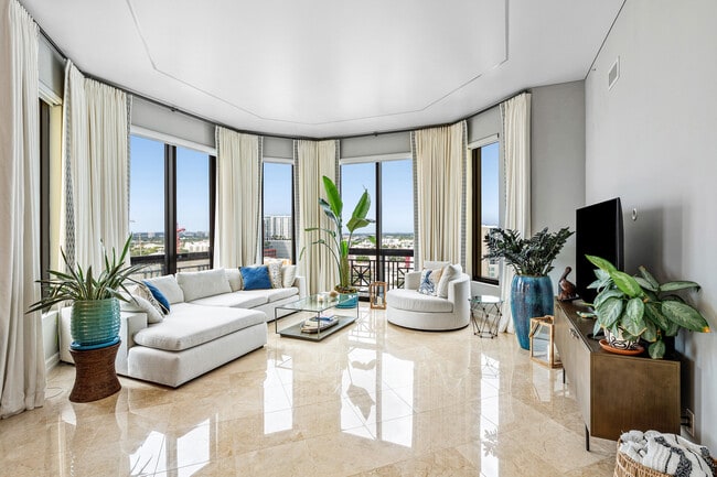 This spectacular furnished residence is a home in the sky with breathtaking panoramic city skyline sunset views and north corner ocean and intracoastal views. Highlighted by 12' ceilings,all marble and hardwood flooring throughout. Floor to ceiling glass and sliders that wrap around corner of the residence. Boasting 2,156sqft,this one-of-a-kind residence welcomes you with a light and airy spacious feel. This 2-bedroom,2.5 bathroom plus den with built-in murphy bed and desk. An expanded balcony with Clear Lake and city skyline sunset views. The kitchen has a modern feel,large open space w/ kitchen table and opens to the large balcony. The spacious master-suite features a luxurious all marble spa-like bathroom,signature large soaking tub,oversized walk-in fitted closet. 2nd bedroom.. has ocean/Intracoastal views and has ensuite bathroom. This also comes with 1-parking space. Perfectly positioned in one of downtown's most sought-after buildings,this residence combines elegance,comfort,and prime location for effortless luxury living. Located just moments from dining,shopping,nightlife,and cultural attractions,Two City Plaza offers full-service,resort-style amenities in one of downtown's most desirable addresses. Amenities in this full-service building are endless; 24-hr security,concierge,roof top pool,hot tub,sauna,steam room,fully renovated state of the art fitness center/gym,outdoor kitchen w/ BBQ area and all NEW Restoration Hardware furniture,outdoor & indoor movie theaters,club room,table tennis,lanai courtyard w/ water feature,renovated roof top dog park area,complimentary valet parking & exceptional staff. Centrally located in the heart of Downtown West Palm Beach,across from One Flagler offices,7 minutes to PBIA airport,award winning restaurants and shopping,and walking to Worth Ave,Palm Beach. MLS ID R11158815