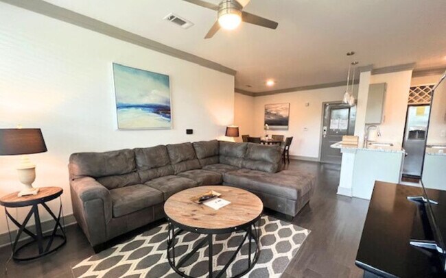 Feel at home in this fully upgraded apartment. This community offers many luxury amenities to ensure you’ll love your stay. This apartment features 2" faux wooden blinds, a designer tile backsplash in the kitchen, framed vanity mirrors, gourmet kitchens with an executive chef undermount sink, granite countertops in the bathroom and kitchen, large walk-in closets, lofty nine-foot ceilings, modern track and pendant lighting, power-saving digital programmable thermostats, sleek modern cabinetry, stainless steel appliances, upscale wood-finish flooring throughout, walk-in showers with rain shower heads, and a washer and dryer. Enjoy the relaxing saltwater pool with a sundeck and cabanas, outdoor grilling with lounging areas, bocce ball, a putting green, and an on-site dog spa. The upscale clubhouse features a state-of-the-art fitness center, a yoga area with a ballet barre, a gourmet coffee and hot tea bar, a cyber café, a conference room, a cinema theater, and a social lounge with a kitchen, gaming, and TVs. Enjoy the Luxer One package system. [SI]