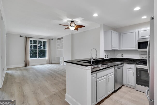 A fantastic place live in Midtown. Park Central offers a prime location with easy access to Piedmont Park and all the amenities of the area. This renovated home with its 1 bedroom, hardwood flooring, and modern features like stone countertops and a built-in workstation make it both comfortable and stylish. The building has been renovated and so has this home. The washer/dryer included are brand new. The bathroom boasts a new lighted vanity mirror, updated vanity sink with plenty of storage and a custom tiled, glass enclosed shower with seating bench. The view of the outdoor pool from the living room and private balcony adds a touch of luxury, and having access to a second indoor, heated pool, along with a gym, sauna, and other amenities, ensures a high standard of living. Access to the Health Club is superbly close from this home. Park Central is called that name for a reason. The proximity to the park, multiple restaurants and shoppes are endless. Midtown is experiencing new growth as well with the Juniper Complete Project. The undergoing improvements to the neighborhood, including better biking and pedestrian facilities, contribute to the area's appeal and growth. And with easy guest parking and a dedicated parking spot for you; convenience is certainly a plus. Overall, Park Central offers not just a place to live, but a vibrant and convenient lifestyle in the heart of Midtown.