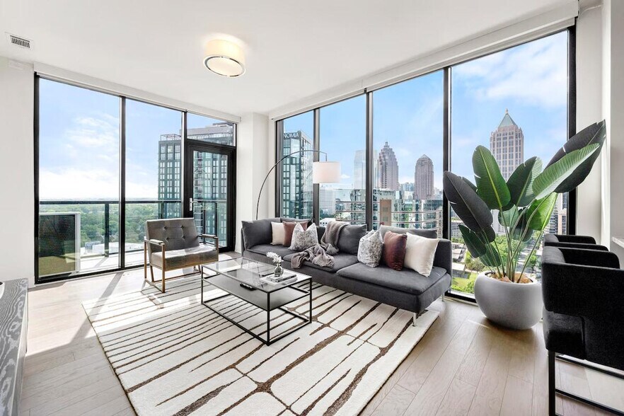 Experience luxury and feel at home in this pristine 2-bedroom penthouse in the heart of Midtown Atlanta, offering stunning skyline views. This apartment features sleek design, floor-to-ceiling windows, a fully equipped kitchen, and upscale amenities for a stylish stay. Walk to top dining, shops, and attractions, making it perfect for business or leisure. The primary guest must be 25 years or older to book and provide a valid government-issued ID prior to check-in for verification. A $500 non-refundable fee will be charged for any smoking-related incidents. [SI]