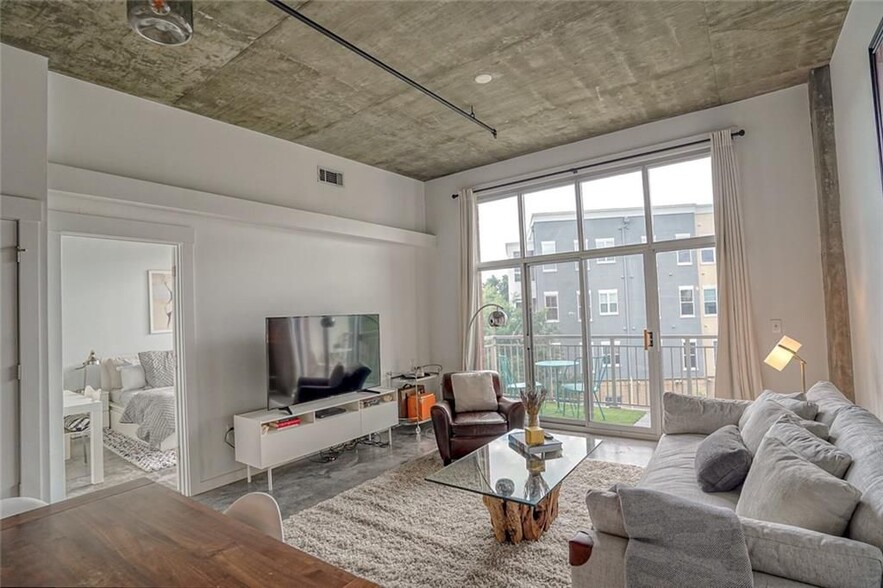 Experience effortless intown living in this premium, fully furnished one-bedroom, one-bathroom rental located in the heart of historic Inman Park. This top-floor, turnkey residence at Inman Park Village Lofts offers a seamless move-in experience, combining industrial chic architecture with all the modern comforts of home. The open-concept living space is defined by ten-foot ceilings, concrete and steel construction, and massive walls of windows that flood the unit with natural light. The interior is thoughtfully curated for both relaxation and functionality, featuring a comfortable living room with a plush couch and armchair, a dining area with a table for four, and a dedicated desk for a quiet home office setup. The bedroom serves as a private sanctuary, anchored by a queen-sized bed and equipped with blackout shades to ensure a restful night's sleep, alongside an expansive walk-in closet for ample storage. The spa-like bathroom is a standout feature, offering a rare separate walk-in shower and a deep jetted soaking tub for the ultimate reset. For those who love to cook, the kitchen is fully stocked with stainless steel appliances and all the essential cookware needed for a chef-ready experience. Beyond the interior, a large private balcony with comfortable seating provides a perfect vantage point to enjoy neighborhood views of one of Atlanta’s most charming districts. The building itself offers a lifestyle of casual sophistication and total peace of mind with fob-controlled entry, a gated parking deck, and one dedicated parking spot included. Residents enjoy access to a fitness center, a rooftop terrace, and a serene community backyard featuring a firepit, grilling area, and garden access. Located directly across from the Atlanta BeltLine, this loft puts you mere steps away from the city's best sidewalk cafes and iconic dining destinations like Del Bar, Beetlecat, and Bartaco, offering an unparalleled walkable lifestyle in Atlanta's most sought-after neighborhood.
