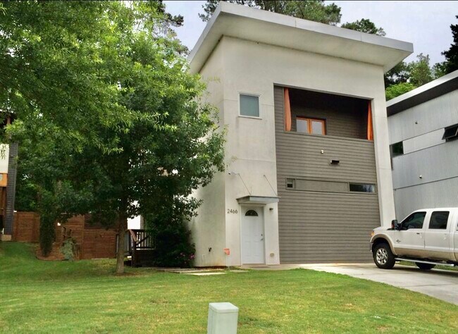 Beautiful Contemporary 3 bedroom, 2.5 bath tucked in a cul de sac in East Atlanta. Bamboo floors throughout, high ceilings, double pan windows, open kitchen with granite counter tops, SS appliances, and island. Jacuzzi Tub, 2 balconies with 1 covered outdoor fireplace on the second floor. Big fenced in backyard for entertainment. Easy access to I-20 and 3-5miles from some of Atlanta's most hip spots such as East Atlanta Village, Little Five Point, East lake Golf club, Grant Park, Zoo Atlanta, Cyclorama. Walking distance to Glen Emerald park with a lake, basket ball, tennis court and walking trail. There is NO garage, but instead there a big flex room for a workshop 24x16, workout room and play room. Driveway parking. There is a 16x20 storage shed in the backyard available for all your storage