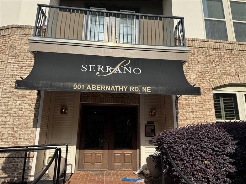 Beautiful 2BD/2BA condo available for rent in the highly desirable Serrano community, ideally located in Prime Sandy Springs near the Mercedes-Benz Headquarters! Just minutes from GA400, Perimeter Mall, and Marta. This upscale mid-rise building offers luxury amenities including a Concierge, Pool, Fitness Center, Sauna, Club Room, and Media Room. The unit boasts a newer water heater, fresh paint throughout, hardwood floors, granite countertops in both the kitchen and bathrooms, stainless steel appliances (including refrigerator), brand new oven/stove, and washer/dryer. The spacious primary suite features dual vanities, a separate tub and shower, and a huge walk-in closet. The guest suite also offers a large walk-in closet and a full bathroom. Enjoy a private, covered balcony off the family room.