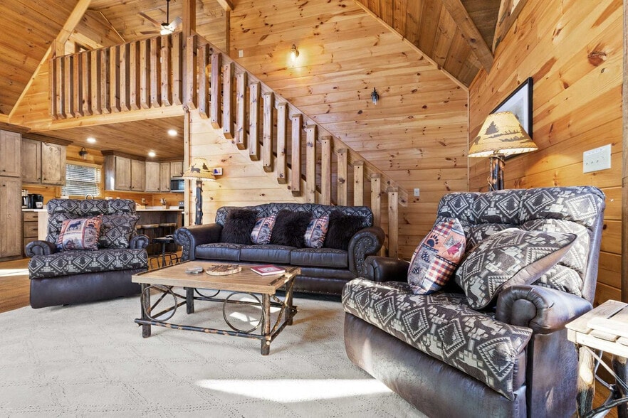 The advertised rate of $4,947/month is the lowest available price, based on a 1 month(s) stay with a move-in date of April 14, 2026. Rates vary depending on the duration of stay, season, and other parameters. For exact pricing and additional pricing components, please visit our website and enter your desired move-in and move-out dates. The rate is applicable when billed upfront; it can be higher if billed in multiple payments. Feel at home in this 3-bedroom cabin in Blue Ridge, GA, offering a perfect mountain escape designed for relaxation and unforgettable memories. This spacious cabin comfortably accommodates up to 10 guests and features a dramatic, high-vaulted ceiling in the living room. The open floor concept flows effortlessly through the main living, dining, and kitchen areas, while expansive windows flood the space with natural light. The fully stocked chef’s kitchen features high-end stainless appliances and a large island with high seating. Enjoy a family/game room complete with a wet bar, comfortable lounging area, and a pool table. Amenities include a wrap-around deck with stunning views, a hot tub, a fire pit, an outdoor lounge with a fireplace and smart TV, a BBQ grill, outdoor dining, corn hole, an indoor wood-burning fireplace, TVs in each bedroom, a private balcony, and a washer and dryer. Parking is available for 3 vehicles in the driveway; street parking is not allowed. Downtown Blue Ridge offers charming shops, art galleries, and local events. Nearby attractions include the Blue Ridge Scenic Railway, Mercier Orchards, Lake Blue Ridge Recreation Area, and Aska Adventure Area. Restaurants in the area include Harvest On Main, Black Sheep Restaurant, Chester Brunnenmeyer’s Bar & Grill, Ferraro’s Kitchen, and Whiskey & Water. Renting a car is a convenient option to explore the area. No pets are allowed. No parties are allowed—violations may result in immediate termination of the stay. Guests must be 21 years or older to book this property. Check-in is at 4pm and check-out is at 10am. [SI]