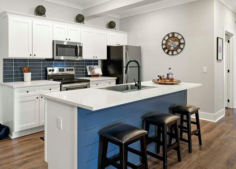 Pointe Grand Brunswick proudly presents two-bedroom apartments offering 1,170 square feet of open living space. These apartments feature upscale interior amenities, including wood-inspired flooring, quartz countertops, stainless steel appliances, oversized kitchen islands, LED lighting, and keyless entry. Residents also enjoy community amenities such as a 24-hour fitness center, a resort-style pool with private cabanas, and a Starbucks coffee and tea bar. In addition, Pointe Grand is a pet-friendly community, offering amenities like a leash-free bark park and a pet spaw, making it a perfect home for you and your furry friend.