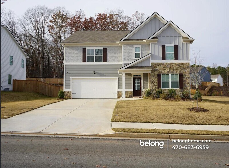 Spanning 3,230 square feet, this 5-bedroom, 3-bath home offers a spacious and well-structured layout designed to accommodate both daily living and focused work. The primary living room provides ample space for full seating arrangements and media setup. Adjacent to this central gathering space, the kitchen features substantial cabinetry, stainless steel appliances, a large island with bar seating, and extensive counter space suited for meal preparation and hosting. A dedicated dining area sits nearby, positioned beside glass doors that allow natural light to enter consistently throughout the day. In addition to five well-proportioned bedrooms and three full baths, the floor plan includes a private office or study, ideal for remote work or quiet concentration. A lofted area adds further flexibility for recreation or secondary living space. Practical enhancements include a water softener, reverse osmosis system, sprinkler system for the entire yard, and a two-car garage. Situated in Dallas, Georgia, this home is located within a welcoming community known for calm, friendly neighbors. Convenient access to Dallas Highway and Cedarcrest Road places Publix, Kroger, and local dining options nearby. White Oak Park and the Silver Comet Trail offer accessible outdoor recreation and leisure opportunities. *Our homes come as-is with all essentials in working order. Want upgrades? Request it through the Belong app, and our trusted pros will take care of the rest!