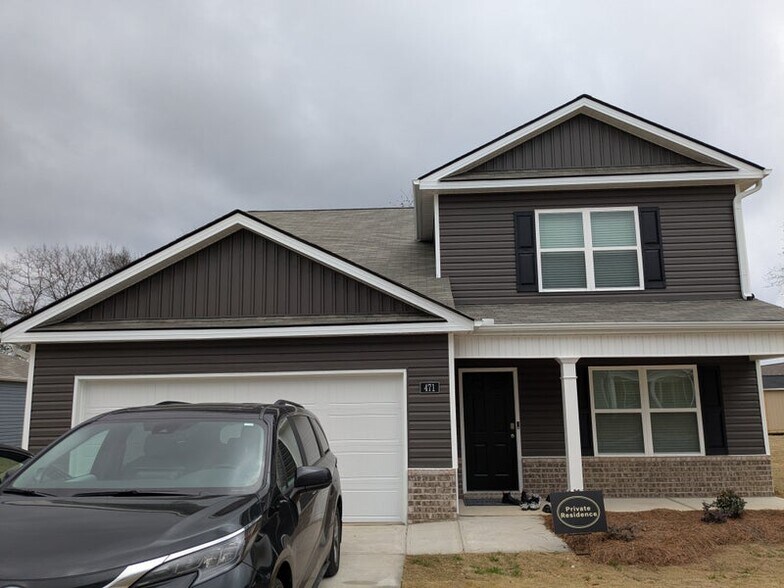 This is a 2618 sqft new construction house with 2 stories. In the first floor you can find shared spaces (office room, living room and kitchen room, laundry room and half bathroom, garage) and a private bedroom with full bathroom. The room for rent is located in the second floor. It has a queen size bed, night stand, TV, desk, chair and a full bathroom. There is a share bonus room in the second floor.