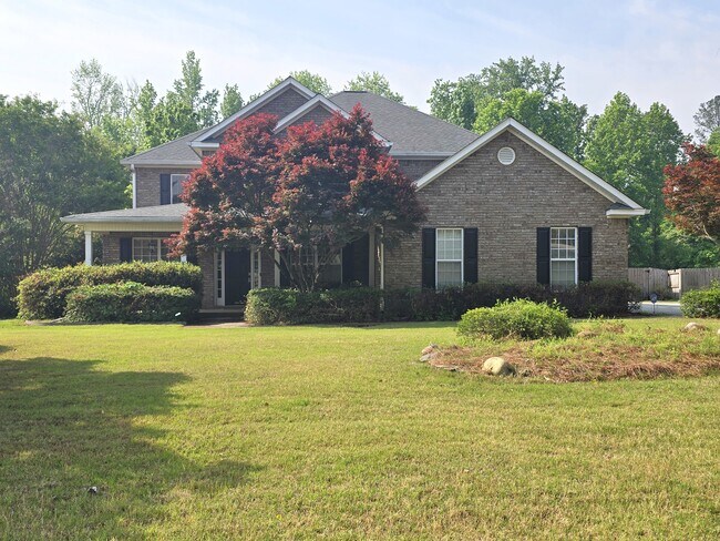 Available for immediate occupancy! Beyond spacious 4 bedroom, 2.5 bath home in Windmill Plantation, with side entry three-car garage. Large covered, rocking-chair front porch opens to two-story foyer with coat closet and built in shelving, formal dining room to the right and den to the left. The formal dining room has chandelier, wainscotting and large picture window. Adjacent butlers pantry has cupboard space and granite counters, plus undercabinet lighting. Great room has ceiling fan, built in shelving and double sided gas log fireplace. Kitchen with granite counters, stainless appliances, tile backsplash, gas range with double oven, kitchen island with raised breakfast bar, built-in desk with undercabinet lighting, and breakfast nook with decorative lighting, chair rail and other side of fireplace. Hall off kitchen has SECOND butlers pantry with floor to ceiling cupboard and granite counter, laundry room with cupboards and washer/dryer hookup and door to three-car garage that has storage bin. Large sunroom off breakfast nook with tile floors and bank of windows overlooking backyard. Primary suite upstairs with trey ceiling and ceiling fan, walk in closet with shelving system, en suite bath with dual sink vanity, walk in shower, separate jetted tub and water closet. Spacious 2nd, 3rd and 4th bedrooms with ceiling fans. Hall bathroom with tub/shower combo. Terraced backyard has a shaded pergola with flagstone patio, adjacent koi pond, and shady fenced backyard!