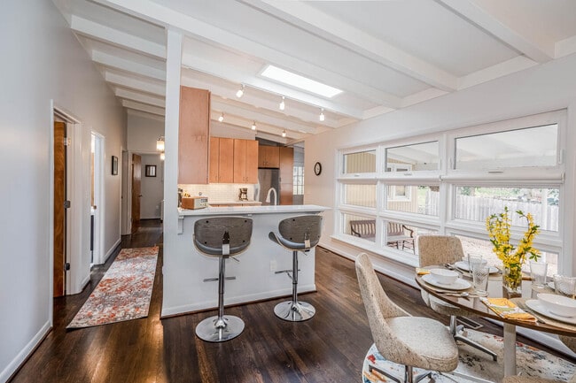 Located only 20 minutes from downtown Atlanta, this Mid-Century Modern in Marietta is a gorgeous space for executive/corporate rental, relocations, or traveling nurses. Newly renovated, comfortably furnished and fully equipped two-bedroom home with 2 baths and a separate office. Amenities include high, beamed ceilings, maple kitchen cabinets with quartz countertops, new stainless appliances, hardwood floors, spacious, well-lit closets, skylights, privacy shades, laundry room, carport, back patio, and off-street parking. Baker Lane is available for stays of 60 days or longer. Includes central HVAC, cable, internet, and utilities. Minutes from historic Marietta Square on a quiet shady street with nearby shopping and restaurants. Easy access to I-75. Close to Wellstar Kennestone Hospital, Lockheed/Dobbins Air Reserve Base, Kennesaw State University, Life University, Atlanta Braves/Truist Park, Kennesaw Mountain National Battlefield Park, Chattahoochee River National Recreation Area, Silver Comet Trail, Lake Allatoona, Six Flags White Water Park and Six Flags Over Georgia, Cobb Energy Performing Arts Center, Atlanta Ballet, Atlanta Dream Training Center, Atlanta United Football Club HQ, Southern Museum of Civil War & Locomotive History. 30 minutes from the foothills of the Georgia mountains. Events in downtown Marietta include weekly Farmer’s Market, weekend Artists’ Market, Taste of Marietta, May-retta Daze Arts & Crafts Festival, free summer concerts in Glover Park, Art in the Park, Chalktober Fest, and the Pilgrimage Christmas tour of historic homes. No pets or smokers. 60-day minimum rental for maximum of 2 adults.