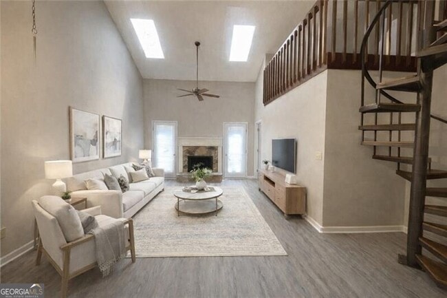 Beautiful 2 Bedroom, 2 Bathroom condo with an awesome loft on a full basement in the heart of East Cobb! Approx. 1,400 sq. ft of living space on the main floor plus a spiral staircase to the loft. There's also approx. 1,400 sq. ft of partially finished basement space to use as a flex space, storage, and laundry. The Kitchen has been updated with granite countertops, stainless steel appliances, including refrigerator, plus a newer sink faucet and hardware. You'll find LVP flooring throughout the main level. The 2-story Great Room offers a custom crafted stone gas fireplace with gas logs, two skylights for added daylight, and two walk-out doors to the relaxing rear deck, the perfect place to relax and unwind. The Primary Bedroom is located at the rear of the dwelling and the Primary Bathroom offers a granite vanity, large walk-in closet and private skylight. New window blinds throughout the main floor. There is a rocking chair front porch that oversees a parking pad that offers two private parking spaces. Additional parking available across the street. This attractive property is ideally located in the Best Cobb County School District - Sope Creek Elementary, Dickerson Middle School and Walton High. You can enjoy a short walk to Kroger, shops and restaurants. Take advantage of the nearby Chattahoochee Nature Preserve, Gold Branch National Forest for hiking and the Roswell Recreational Boardwalk along the Chattahoochee River. The Gardens of Parkaire is the perfect place to call home, offering beautiful green space in a quiet, friendly community. Sorry, no pets allowed and smoking is prohibited. Owner pays HOA dues and Tenant pays all utilities. MLS ID 10703278