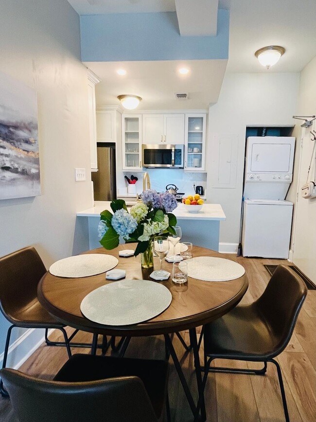 Newly remodeled apartment in the historic building located in downtown Savannah. Unit 405 is situated on the top floor and has abundance of light. Apartment is fully furnished. Kitchen is open with new stainless steel appliances, custom cabinets, Calacatta gold quartz countertops and new washer and dryer. One of the most sought after location with easy access to SCAD facilities and city center: you can walk anywhere in the city. On street parking ; permit is available though City of Savannah. Nestled in heart of historic Savannah this unit offers a blend of elegance and modern comfort.