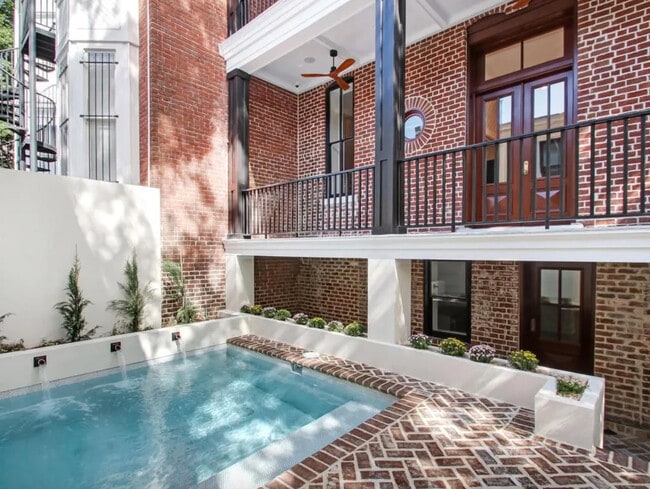 This home is available for guests looking for a 31+ night rental. Specific pricing is available upon request. Monthly rates typically range from $9,500-$11,500/month and final rates are based on season and length of stay. *Fully furnished- utilities/internet included for leases less than 12 months* Experience the epitome of historic elegance at Lafayette Estate, a refined city home nestled just steps away from the enchanting Lafayette Square in the heart of the Landmark Historic District of Savannah. Meticulously transformed into a modern masterpiece while preserving Savannah's iconic charm, this four-level estate boasts unparalleled sophistication. Throughout the estate, guests will find exquisite furnishings and finishes from Restoration Hardware, ensuring a luxurious experience. The seamless flow and space of the formal living and dining areas lead to a European-influenced kitchen, creating an ideal setting for entertaining. The chef's kitchen is a true culinary haven, featuring floor-to-ceiling tiles, brass fixtures, chef-worthy appliances, and stunning custom cabinetry. Indulge in luxury with four bedrooms, each featuring an opulent ensuite bathroom and a spacious walk-in closet. Throughout the house, guests will appreciate the meticulous attention to detail, including antique and reclaimed heart pine floors, soaring ceilings adorned with custom decorative molding, and a grand staircase. Embrace modern convenience with smart home technology, offering full integration with lights, music, video, and alarm systems. Outdoor enthusiasts will appreciate the two balconies overlooking the private, walled courtyard with a tiled plunge pool. Guests will enjoy the added convenience of private parking with access to a detached two-car garage. Lafayette Estate not only provides a luxurious retreat but also immerses you in the best of Downtown living. Explore the city's treasures, from moss-draped squares and the Cathedral of St John the Baptist to fine restaurants, galleries, and more, all within walking distance. Immerse yourself in the charm and sophistication of Savannah at Lafayette Estate. Sleeping Configuration: Bedroom 1: King Bed Bedroom 2: King bed Bedroom 3: King Bed Bedroom 4: King Bed What is parking like for this home? Guests will have access to a detached garage with two private parking spaces.