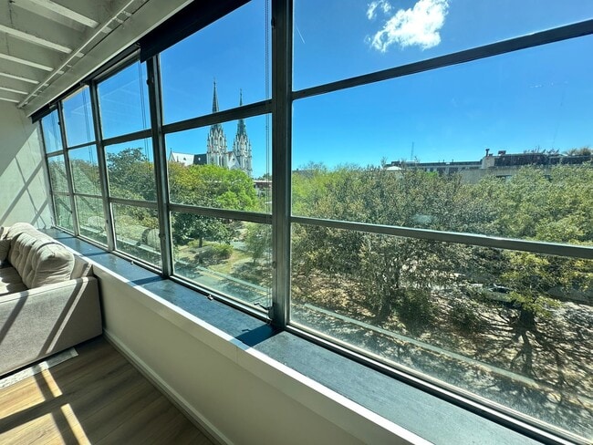 This spacious, open floor plan condo, on the 4th floor of Drayton Towers. The condo is flooded with natural light and has gorgeous views of the Cathedral and tree lined Liberty Street. The kitchen has been beautifully updated with granite counter tops, touch screen stainless steel appliances and elegant wood cabinetry. The bedroom has a large walk-in closet and en-suite bathroom. The master bath is finished with natural stone tile, glass shower and modern fixtures. There is plenty of storage throughout the unit, as well as a large laundry room. Also, a half bath for guests keeps your personal space private. Location can't be beat!