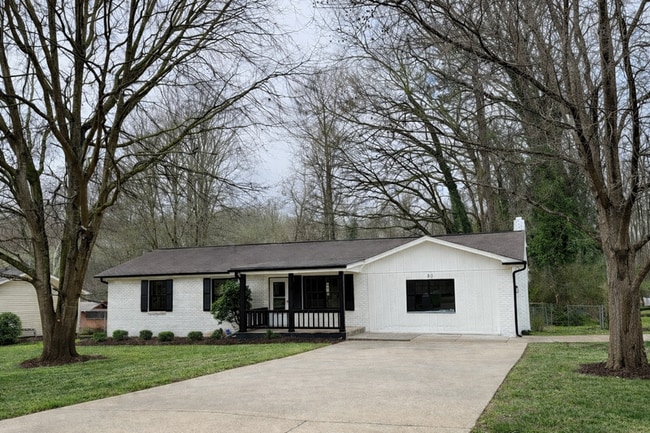 Welcome home to 80 Glenn Burnie Drive, a beautifully renovated property offering modern finishes and functional space. This home has been updated from top to bottom and features durable LVP flooring throughout the open living areas, creating a cohesive and low-maintenance living space. The original garage has been thoughtfully converted into a spacious den, complete with large windows that bring in abundant natural light and a classic brick fireplace—perfect for a second living area, home office, or cozy retreat. The main living space flows seamlessly into the kitchen, which has ample cabinetry, brand-new granite countertops, and all new stainless steel appliances. Step outside to enjoy the screened porch overlooking a large, fenced backyard, ideal for relaxing or entertaining. The backyard also includes a storage shed for added convenience. Down the main hallway, you'll find two secondary bedrooms that share a full bathroom. The primary bedroom features its own private full bathroom and two closets, offering extra storage.