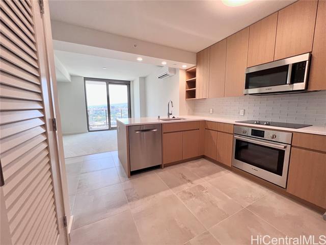 Available 10/31/23! 1 bedroom / 1 bathroom / 1 parking unit in the newly completed Sky Ala Moana West. Modern, fresh design! Experience the open feel provided by the floor-to-ceiling windows. 2 split AC, 2 ceiling fans and newly installed shades. Relax on the lanai and take in the unobstructed mountain, city, and partial ocean views. The Sky Terrace eighth-floor amenity deck is one of the largest in Honolulu. Enjoy resort-like amenities featuring a pool whirlpool spa, lap pool, BBQ cabanas, fitness center, playground, party rooms, spa with dry and steam sauna and so much more! Tenant pays: Electricity and renters insurance required for duration of lease term. Utilities included: Basic tv cable, basic internet/Wi-Fi, water/sewer. $35 application fee per applicant, anyone 18 and over must apply. NO SMOKING, e-cig, vape, and any other in the unit or on the property.