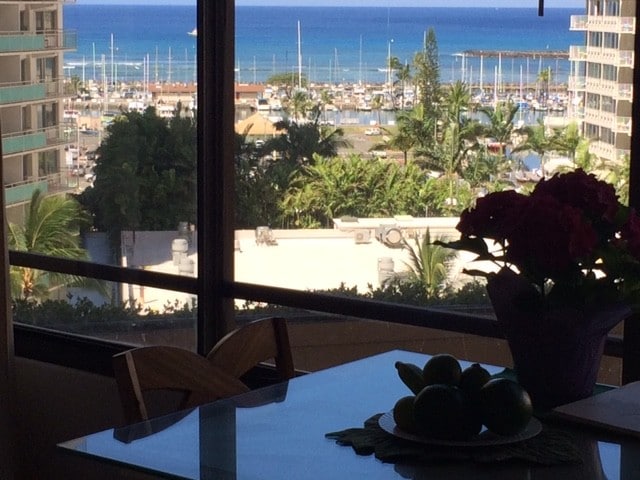Fully Furnished Waikiki studio at Discovery Bay with stunning Waikiki Beach views and covered secured parking next to lobby entrance. Nicely appointed with everything you need to call home. Features new stainless steel Bosch appliance, quartz counter tops in the kitchen and bathroom, a stack washer and dryer and wood-like plank flooring. In fact the only this missing is you. Just bring your suitcase and you’re all set. We only look expensive, the low monthly rent includes all utilities (specifically it includes: electric, cable, internet, high speed modem and router, water, parking, hot water, 24/7 security, sewer, trash, Hawaiian General Excise Tax of 4.712 percent and central a/c). In short, there are no ups, no extra charges and no surprises. The view from the windows is the same view as the opening credits to the 1960 TV show Gilligan's Island. Apply today before it’s gone.